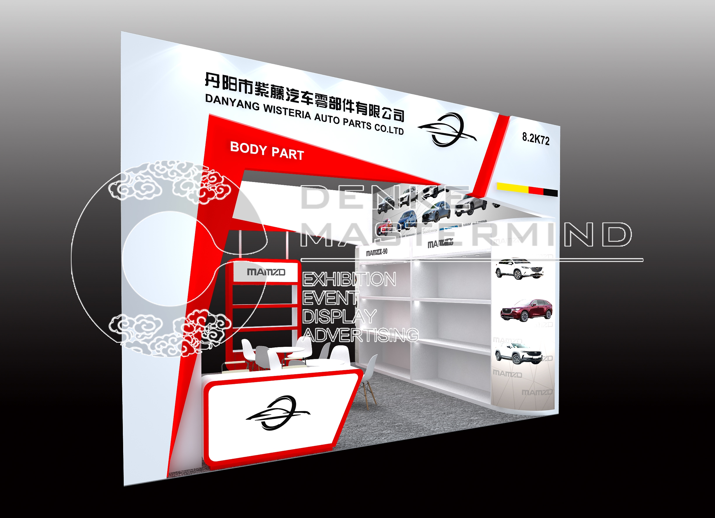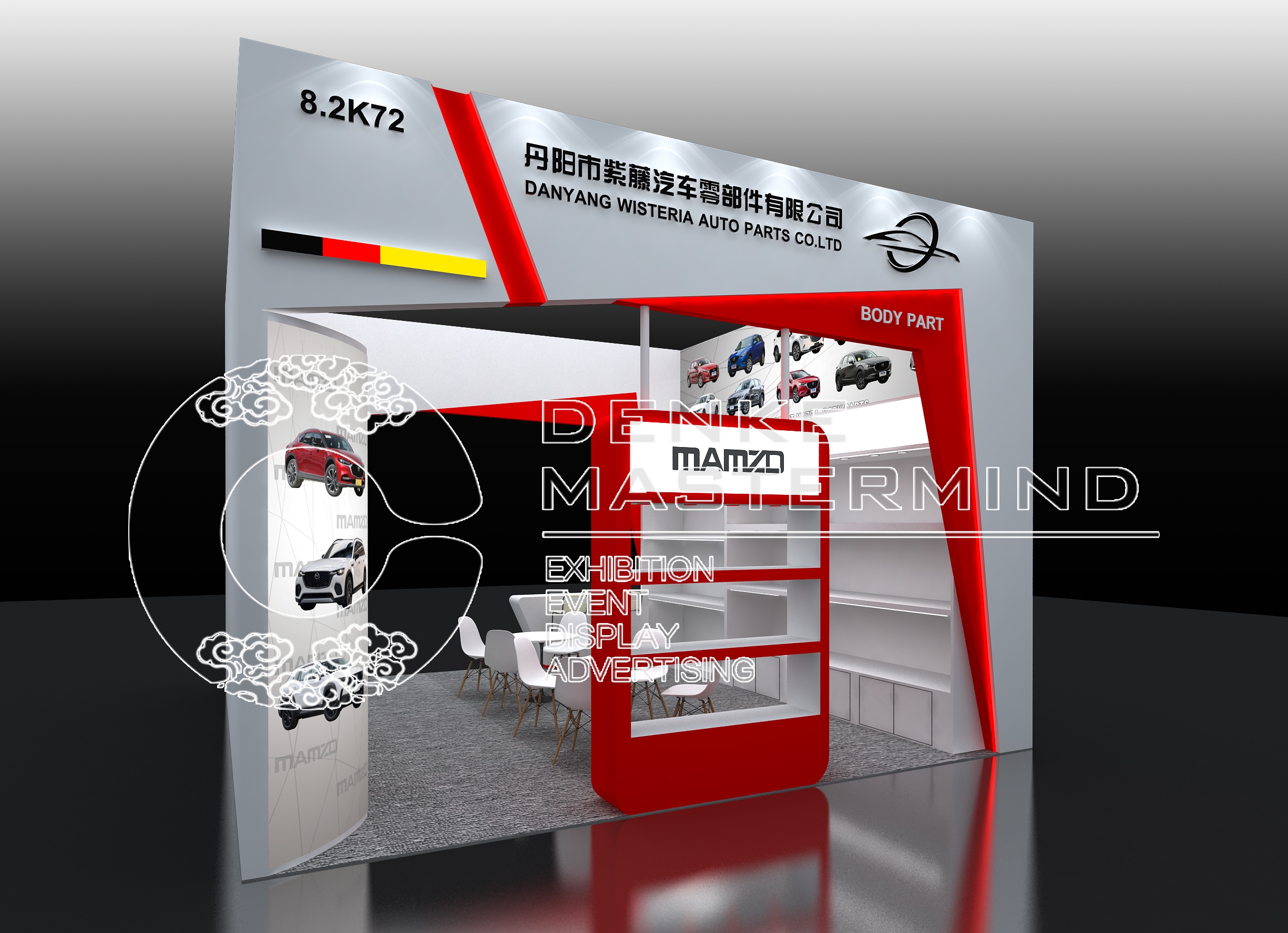 法兰克福汽配展2面开的36平对开展位设计的细节解析: