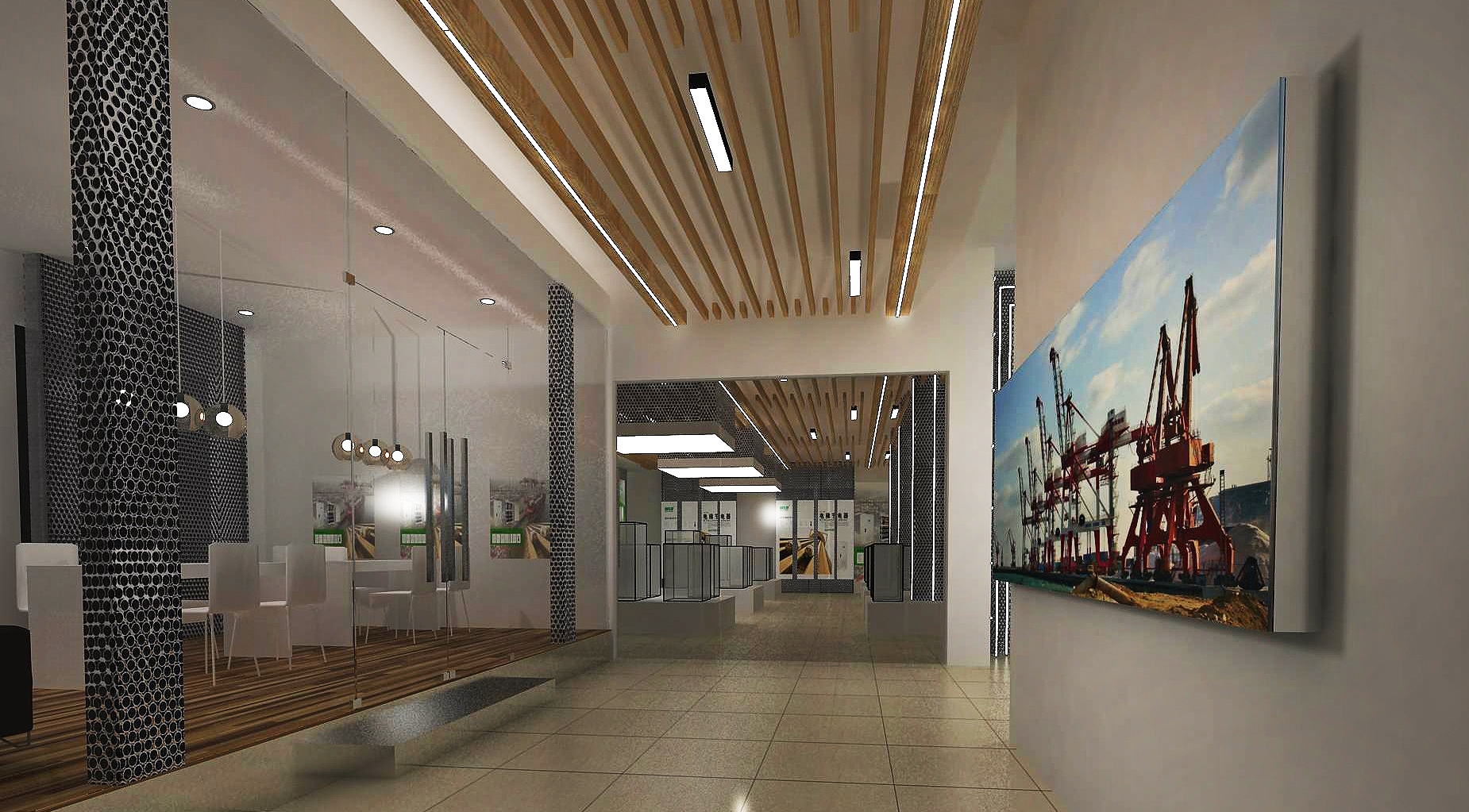 功能布局:动线设计遵循 “参观 - 体验 - 交流” 的逻辑闭环,核心产品区以悬浮展台突出展品质感,互动体验区设置节能模拟装置,参观者可实时感受电气设备的低耗运行优势。整体空间无多余装饰,却通过材质碰撞与光影层次,